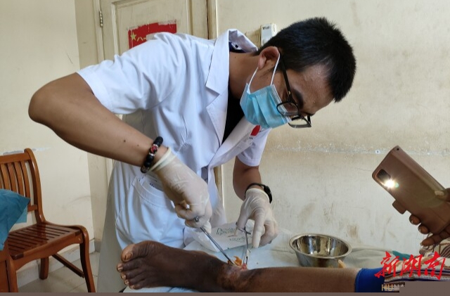 在中塞友好医院,他多方联系,牵头成立了首家塞拉利昂伤口康复临床医学研究中心。从伤口撒盐到伤口撒糖,改变了塞拉利昂伤口撒盐这种错误的伤口治疗理念,创新性地试用当地便宜易得的蜂蜜原浆治疗伤口,极大缓解了患者换药时的疼痛刺激,促进了伤口愈合时间,而且降低了患者医疗费用,在非洲当地具有良好的应用价值。